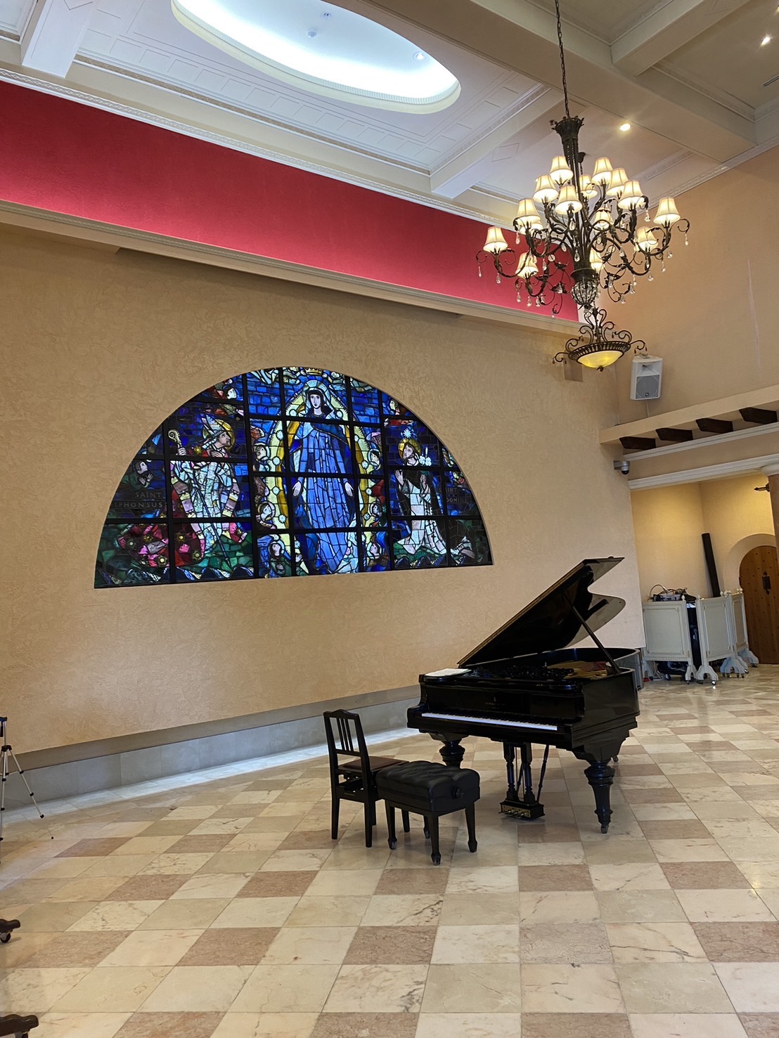 爽やかな秋晴れ☀️お天気にも恵まれて💕パーティ会場マリア✨のステンドグラスにスタインウェイピアノが美しい😍