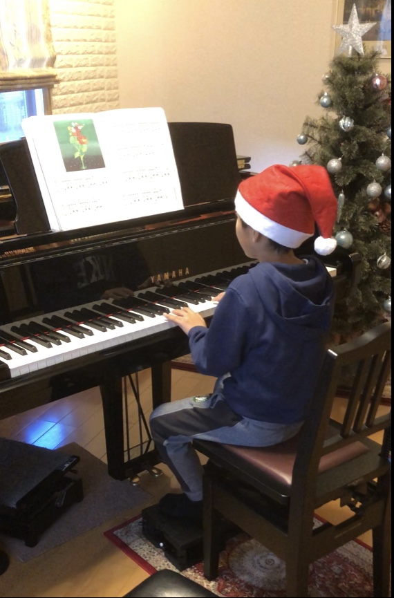 クリスマスのレッスン日でテキスト修了曲の合格おめでとう🎉