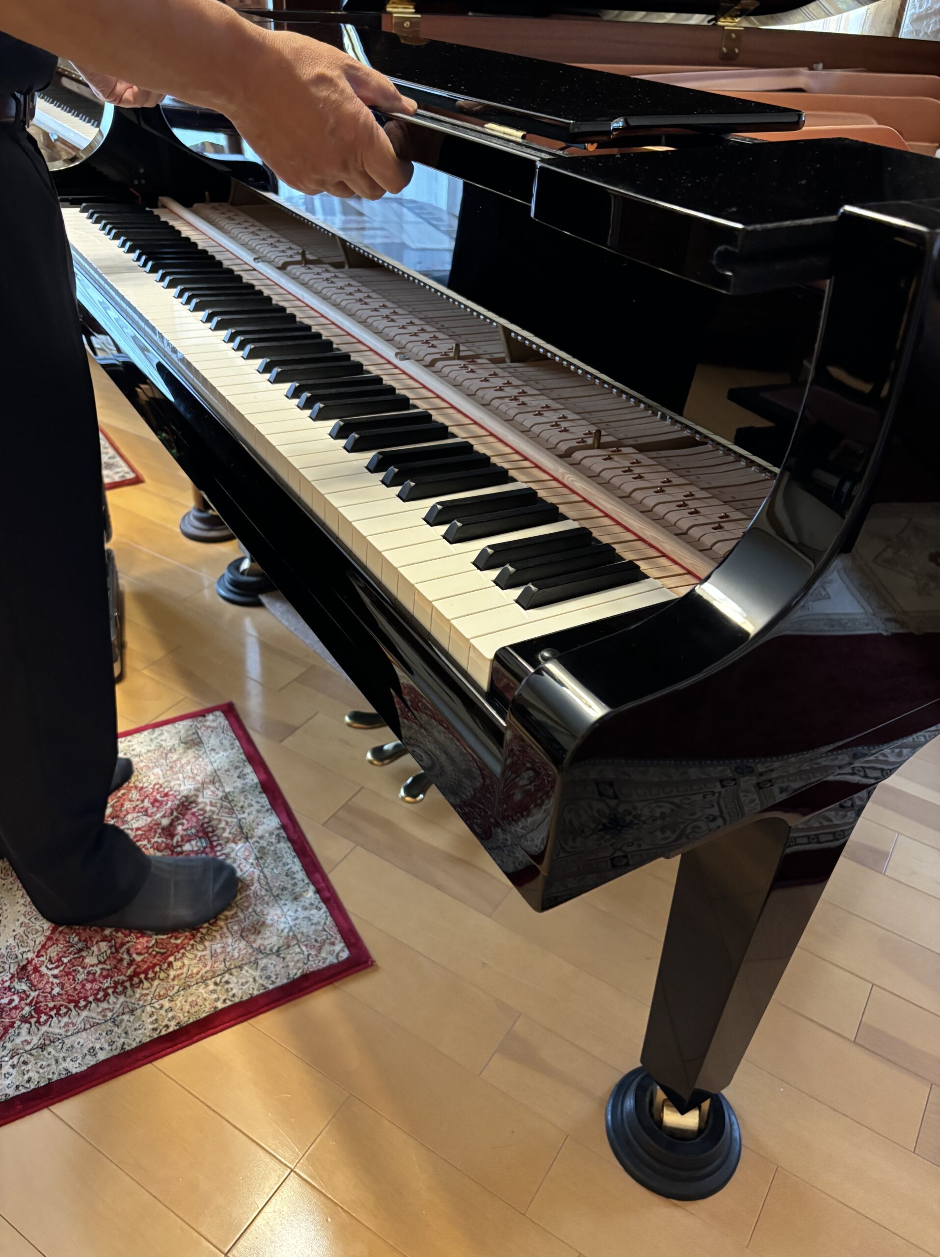 教室のピアノさん、よく打鍵される中央周辺の白鍵を念入りに〜今回も2時間かけて念入りに調律していただきました👌