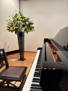 当日は朝早くからピアノの調律が行われ、ステージのお花が届き‥着々とホール内の準備が進み‥